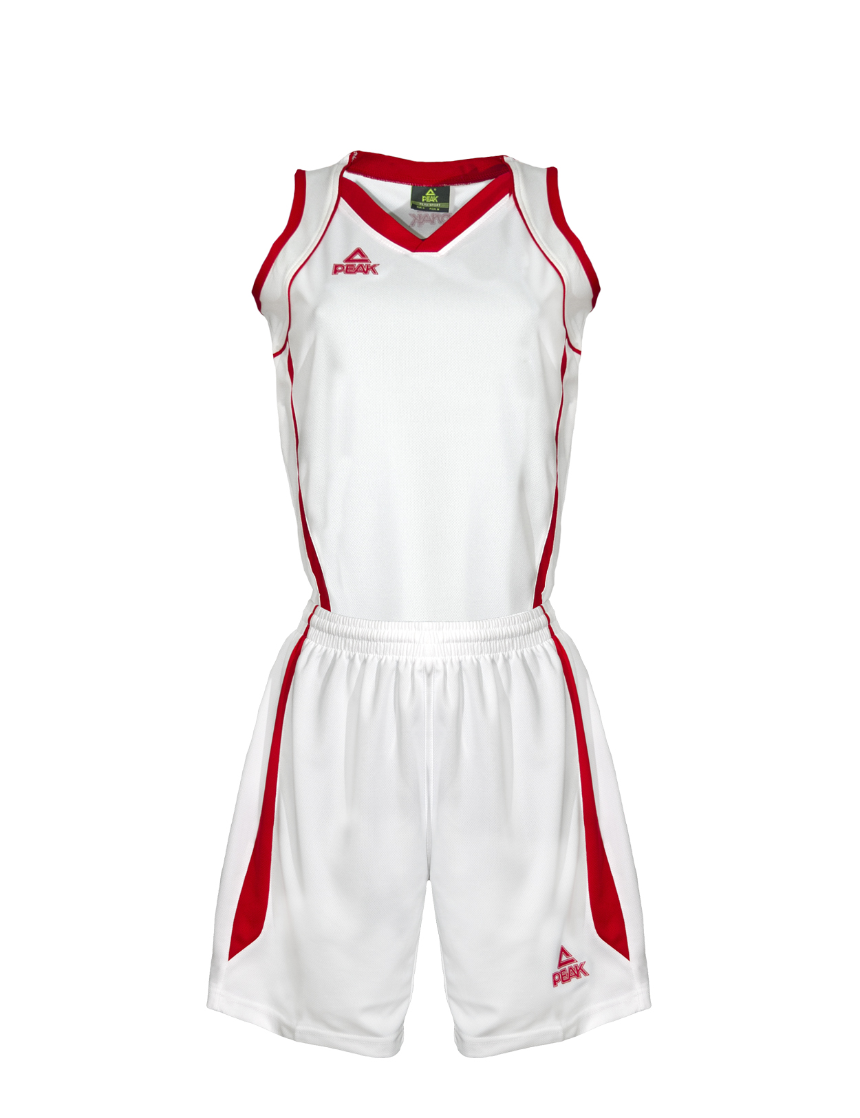 Das qualitativ hochwertige Trikot hat farbig abgesetzte Bündchen und Streifen und ein kleines, farblich passendes PEAK-Logo im Brustbereich. Die Shorts haben entsprechend farbige, seitliche Streifen und ein kleines PEAK-Logo auf dem linken Bein.